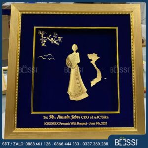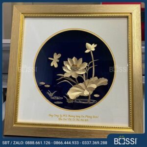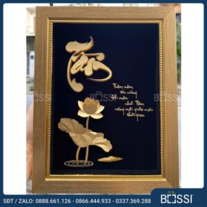 Ngoài ra, Bossi còn có rất nhiều bức tranh khác mạ vàng với mẫu mã đa dạng về: bông sen vàng, hình ảnh thiếu nữ mặc áo dài cạnh bản đồ Việt Nam, chữ Tri ân viết theo lối thư pháp nho nhã,… Hoặc đơn giản nhất là những bức tranh gửi gắm thông điệp về các dịp kỷ niệm đặc biệt, chúc mừng/khen tặng nhân viên xuất sắc,… Bạn có thể lựa chọn hoặc đề xuất ý tưởng.