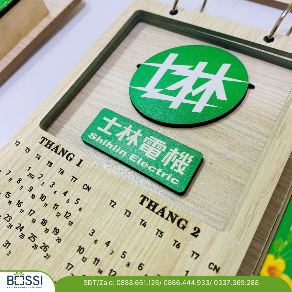 Lịch gỗ để bàn 2025 in khắc logo VINA ELECTRIC có gì?