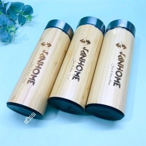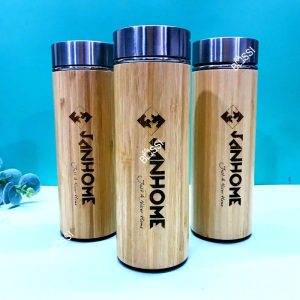 Bình giữ nhiệt vỏ tre 450ml khắc logo Janhome, quà tặng thân thiện