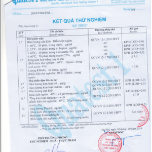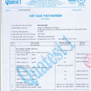 Kết quả thử nghiệm Quatest Bình giữ nhiệt Bossi Việt Nam