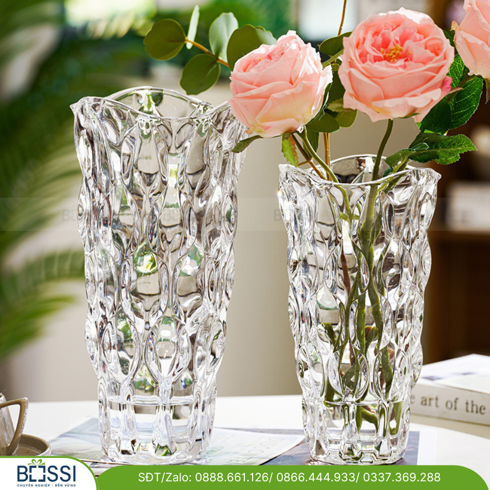 - Bình hoa thủy tinh cao cấp in logo làm quà tặng theo dịp, quà tặng khách hàng: các doanh nghiệp khi lựa chọn bình hoa thủy tinh cao cấp làm quà tặng khách hàng nhân các sự kiện thường đòi hỏi số lượng lớn và giá cả cạnh tranh vì vậy nên chọn những nhà cung cấp lớn, uy tín đáp ứng được số lượng lớn và đảm bảo thời gian giao hàng. Hơn nữa những nhà cung cấp lớn hàng đầu thị trường cũng sẽ cho bạn giá tốt. Bên cạnh đó, bình hoa thủy tinh cũng có mẫu mã rất đa dạng và nhiều chủng loại khác nhau, theo đó giá cả của sản phẩm cũng có sự khác biệt, vì vậy việc chọn mẫu bình hoa có giá phù hợp, đảm bảo chi phí cũng là vấn đề rất quan trọng. Thông thường những bình hoa pha lê đúc sẽ có giá rẻ nhất dao động từ 350.000 đồng đến 5.000.000 đồng (tùy thuộc vào chiều cao và kích thước của bình) sẽ phù hợp với các doanh nghiệp.