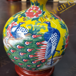 Bình hút tài lộc vẽ công, bình gốm sứ Bát Tràng – BTR02