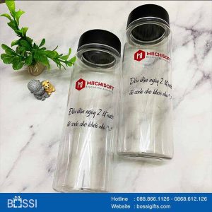 Bình nước nhựa 500ML quà tặng in logo Miichisoft, quà tặng in logo thương hiệu, mang tính thẩm mỹ cao.