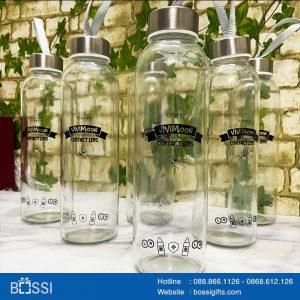 Bình nước thủy tinh 500ML – in logo VIVIMOON, nắng lên rồi tặng gì giá rẻ, tiết kiệm, an toàn, tiện ích.