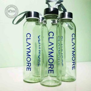 Bình nước thủy tinh 500ML logo Claymore – Fovina, quà tặng in logo thương hiệu, mang tính thẩm mỹ cao.