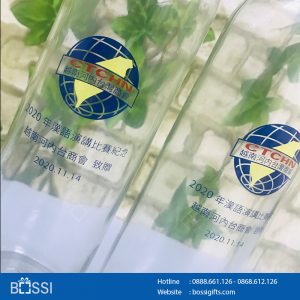 Bình nước thủy tinh 500ML quà tặng- Hiệp hội thương gia Đài Loan tại Hà Nội CTCHN, bình nước thủy tinh đang là xu hướng được ưa thích hiện nay đặc biệt là giới trẻ, giới văn phòng, ưu điểm quai sách nhiều màu sắc đáng yêu gửi gắm đến khách hàng sự yêu mến của doanh nghiệp. Với thân bình thon dài, công nghệ in lụa một màu hoặc nhiều màu in trực tiếp trên thân bình với logo của doanh nghiệp.