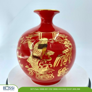 Chi tiết Bình sứ hút tài lộc in họa tiết vàng 24k
