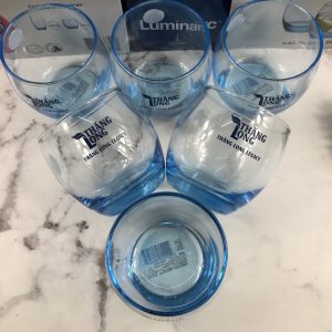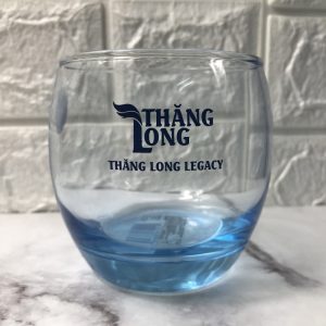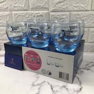 Bộ sản phẩm 6 cốc thủy tinh có màu xnah và in logo Thăng Long Legacy
