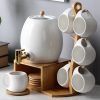 - Chất liệu: Sứ trắng cao cấp. Khay gỗ tre tự nhiên xử lý sơn bóng chống ẩm mốc, mối mọt…