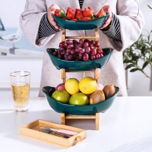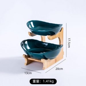 Bộ đĩa sứ giá gỗ đựng bánh mứt hoa quả 2 tầng – Xanh có những đặc điểm sau: