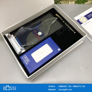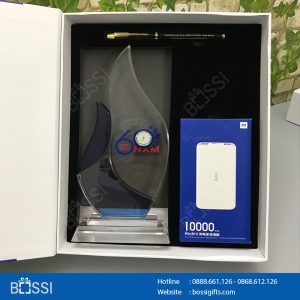 - Bộ quà tặng gồm 3 sản phẩm: bút ký, sạc dự phòng, Cup biểu trưng phale