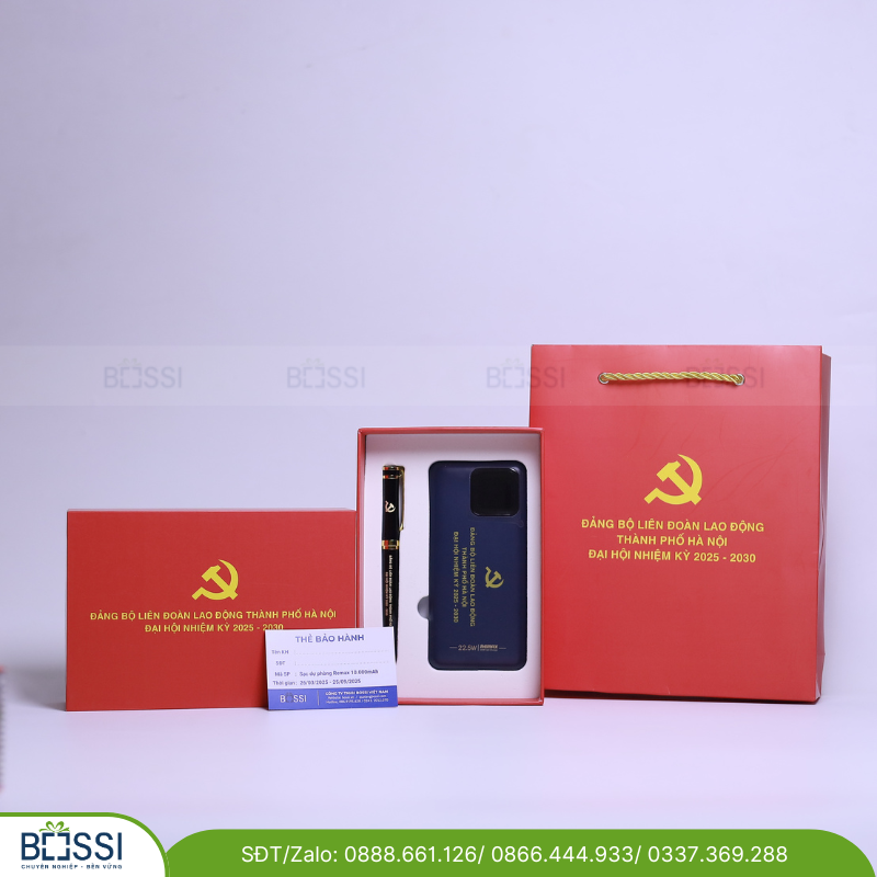 • Sạc dự phòng: Đặc biệt hữu ích trong thời đại công nghệ, giúp đại biểu luôn giữ kết nối và không lo hết pin điện thoại trong những ngày diễn ra đại hội.
