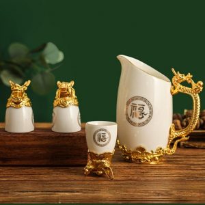 Đặc điểm của Bộ ly rượu 12 con giáp sứ trắng mạ vàng (hộp da cao cấp) BL02: