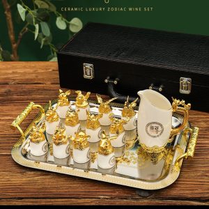 Bộ ly rượu thể hiện 12 con giáp: Tý – Sửu – Dần – Mão – Thìn – Tỵ – Ngọ – Mùi – Thân – Dậu – Tuất – Hợi. Sản phẩm có đầy đủ 12 ly rượu và một bình rót rượu mỗi khi sử dụng. Khi dùng xong gia chủ có thể sử dụng trưng bày làm đồ trang trí kệ, tủ rượu hay để bàn đều rất ấn tượng.