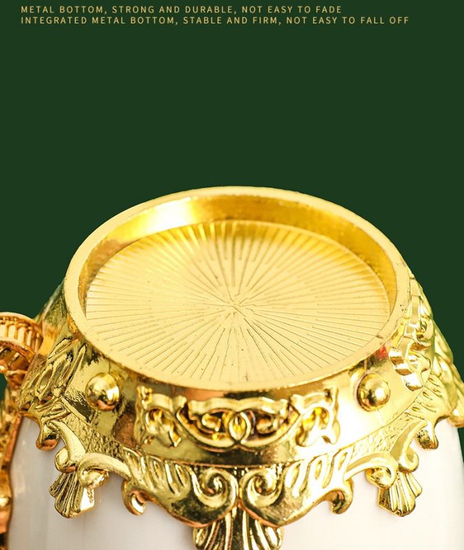 - Chất liệu: Sứ cao cấp + mạ vàng 14k