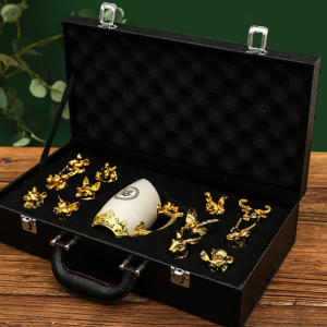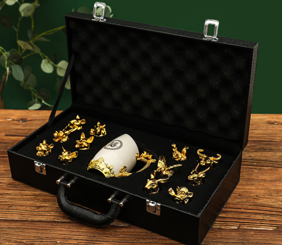 Đặc điểm của Bộ ly rượu 12 con giáp sứ trắng mạ vàng kèm khay (hộp da cao cấp) BL04: