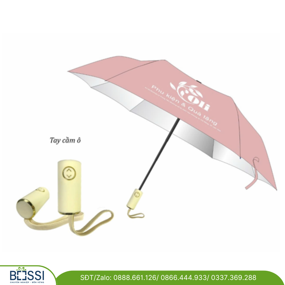 Chất liệu inox 304 cao cấp, in logo 1 vị trí - 01 Ô gấp 3 tự động 2 chiều