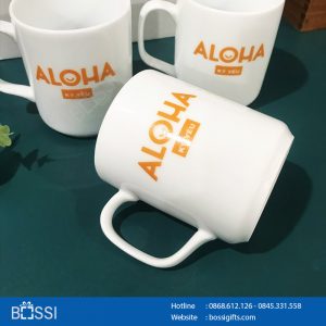 Cốc sứ Bát Tràng 350ml in logo ALOHA Kỷ yếu, không chỉ là đồ dùng sinh hoạt bình thường, những chiếc cốc xinh còn là đồ trang trí cho góc làm việc hay không gian sống thêm sinh động, dễ thương hơn.