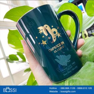 Thiết kế sáng tạo, ấn tượng màu xanh quý phái sang trọng. Cốc được làm từ sứ trắng cao cấp, vẽ vàng họa tiết cung hoàng đạo tinh tế và cá tính.