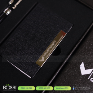 - Dễ cá nhân hóa thương hiệu: Logo được khắc laser trên túi đựng thẻ và bút, vừa tinh tế vừa chuyên nghiệp.