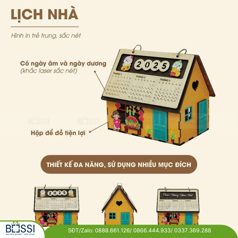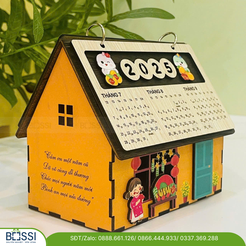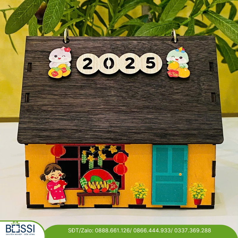 Lịch gỗ để bàn 2025 kèm hộp đựng đồ tiện lợi, sang trọng lấy ý tưởng thiết kế từ ngôi nhà yêu thương: