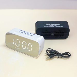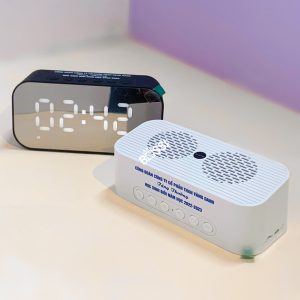 - Loa bluetooth kiêm đồng hồ báo thức được tích hợp thêm giờ hiển thị.