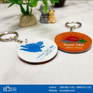 Có rất nhiều loại móc khóa tùy theo chất liệu: Móc khóa kim loại, Móc khóa Mika, Móc khóa da, Móc khóa gỗ in hoặc khắc logo thương hiệu rõ ràng một cách đẹp mắt, tạo hiệu quả lớn, tạo dấu ấn ghi nhớ cho người được tặng.