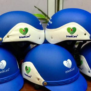 Mũ bảo hiểm bọc da thêu logo_ TBYT Việt Mỹ. iMedicare