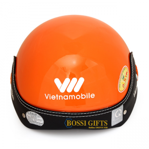 Mũ bảo hiểm bọc da thêu logo_ VNmobile, thêu logo thương hiệu Vietnammobile, với thiết kế form dáng nửa đầu sang trọng. Hai bên có phối da chạy chỉ nổi rất sành điệu, phù hợp với giới trẻ hiện đại.
