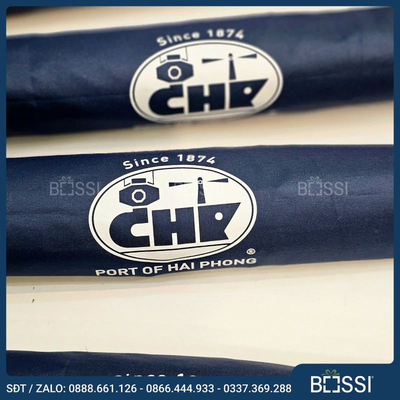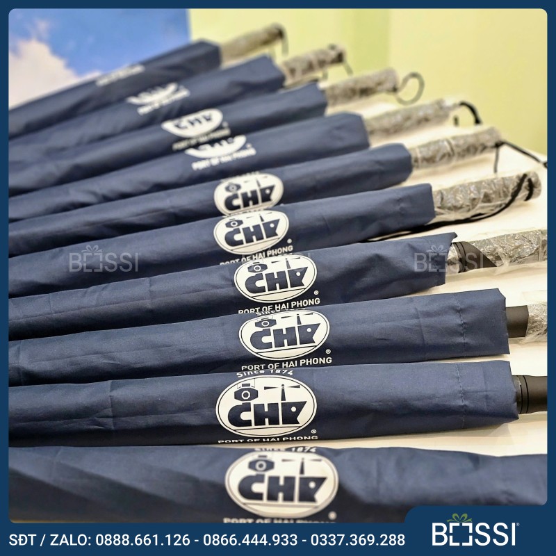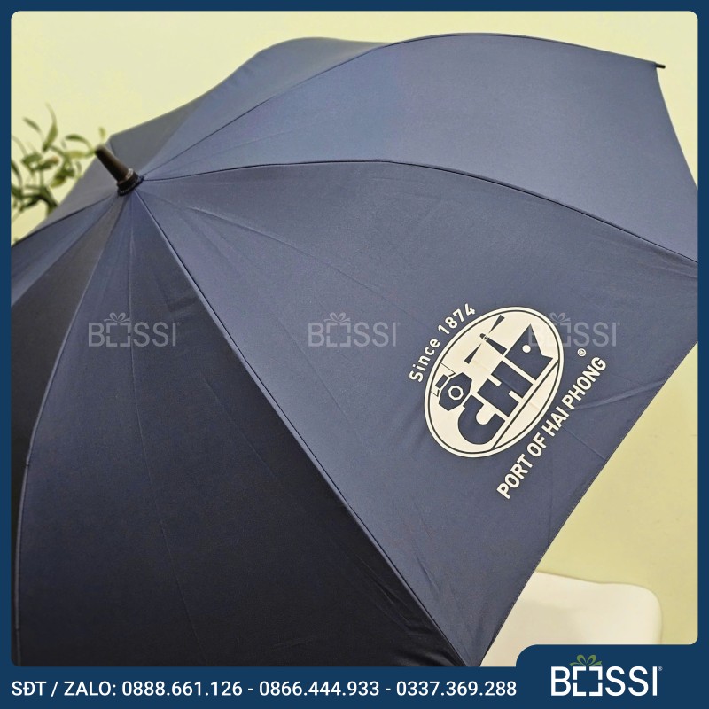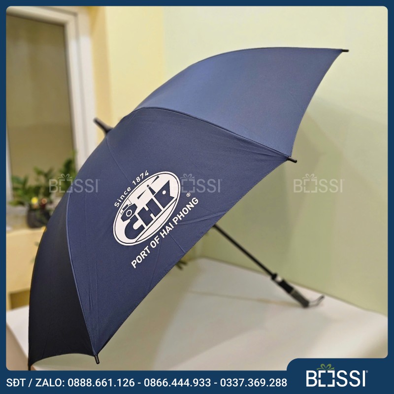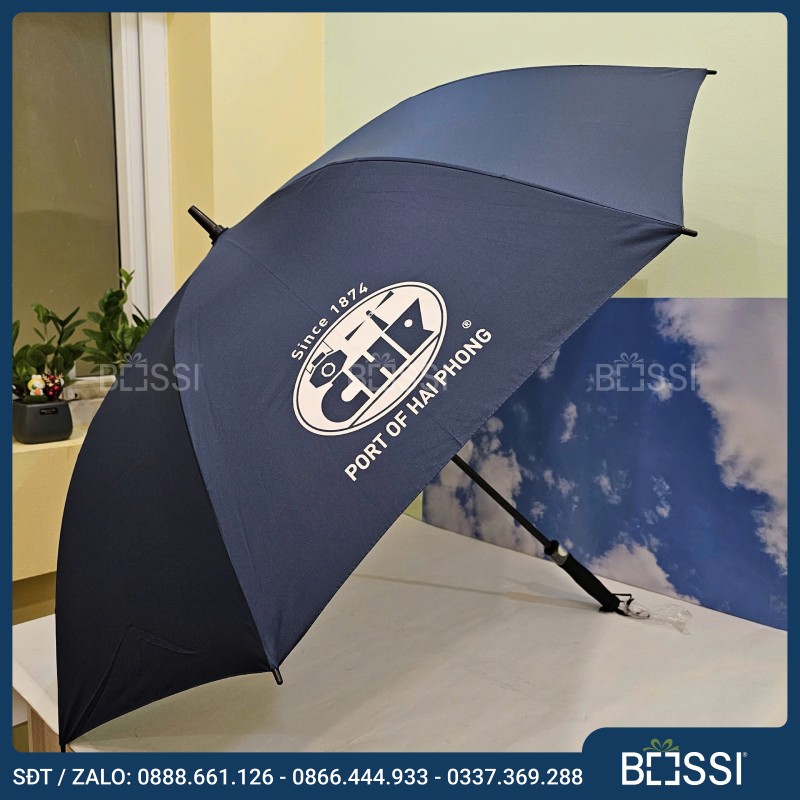 Ô cán thẳng logo CẢNG HẢI PHÒNG là quà tặng văn phòng được nhiều khách hàng quan tâm và lựa chọn. Thiết kế thanh lịch, màu sắc sang trọng, lịch lãm, tất cả đã tạo nên một chiếc ô có khả năng cùng thương hiệu vươn xa.