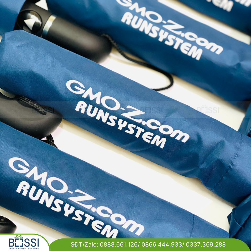Có rất nhiều kiểu dáng ô ra đời nhằm thỏa mã nhu cầu sử dụng của người tiêu dùng. Cùng với đó là nhu cầu ô dù in logo làm quà tặng cũng trở nên phong phú hơn. Ô gấp 3 tự động 1 chiều logo GMO giải pháp quà tặng cho doanh nghiệp bạn. Ô gấp 3 tự động 1 chiều logo GMO cùng thương hiệu vươn xa.