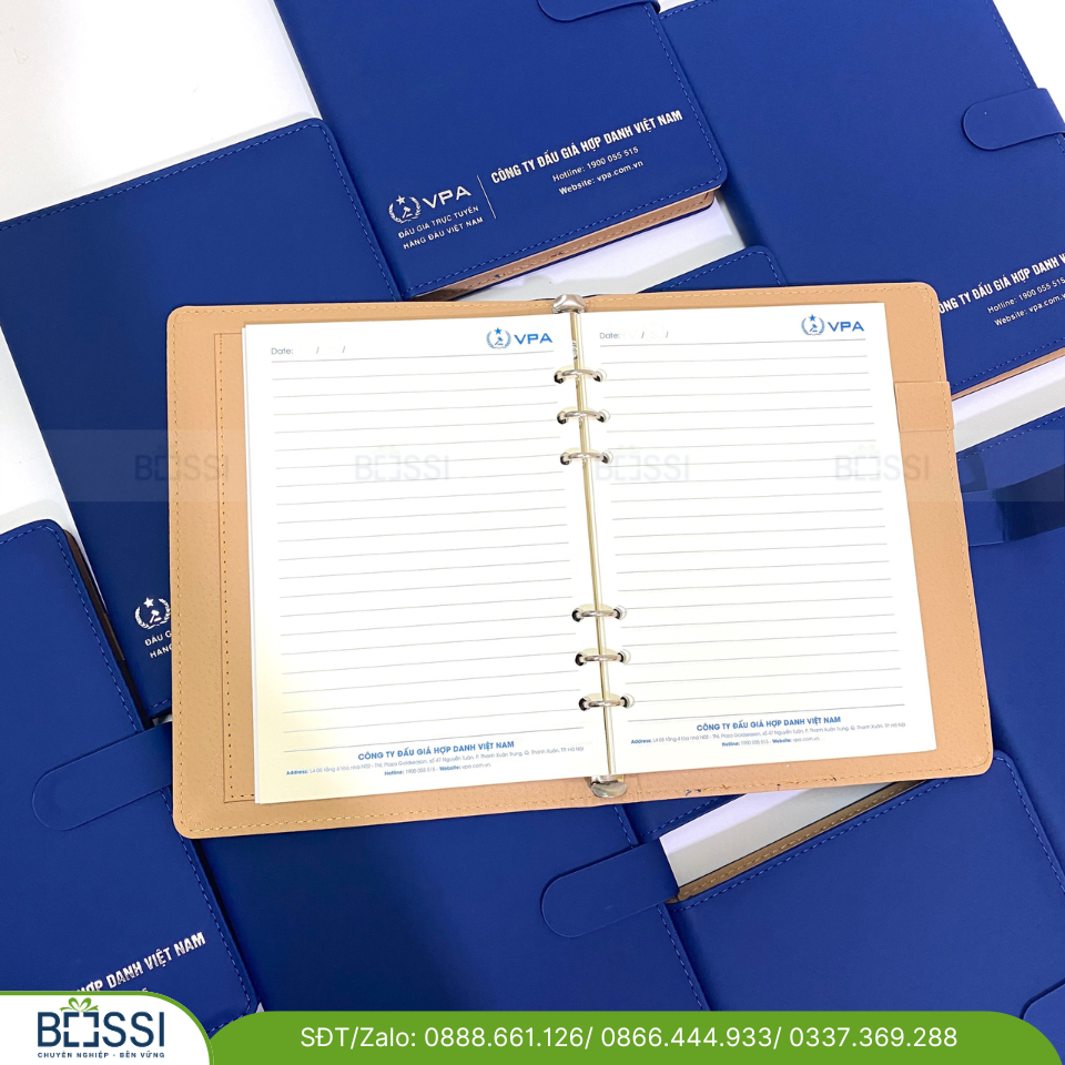 Sổ da A5 gáy còng logo VPA là một loại sổ tay được sử dụng để ghi chép công việc hàng ngày, hoặc khi đi công tác, là vật dụng không thể thiếu đối với nhân viên văn phòng, thương nhân…