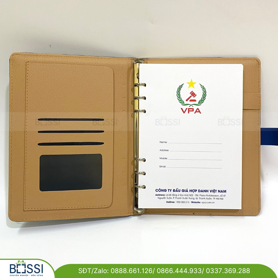 1. Thông tin chi tiết về Sổ da A5 gáy còng logo VPA: