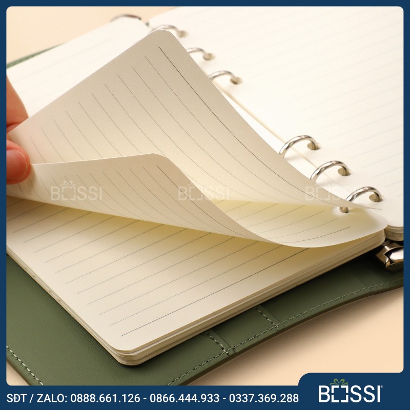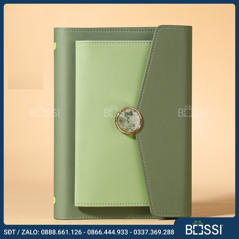Sổ da gáy còng SC02 thiết kế dạng ví bì thư đơn giản nhưng đầy phong cách khi phối kết hợp giữa các màu sắc đậm và pastel. Các màu sắc cơ bản sử dụng: xanh lục, xanh dương, cam đất, trắng, ngà,… phối hợp tạo nên nét thanh lịch đậm chất Hàn Quốc, chinh phục mọi ánh nhìn.