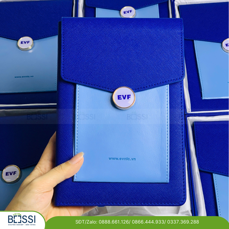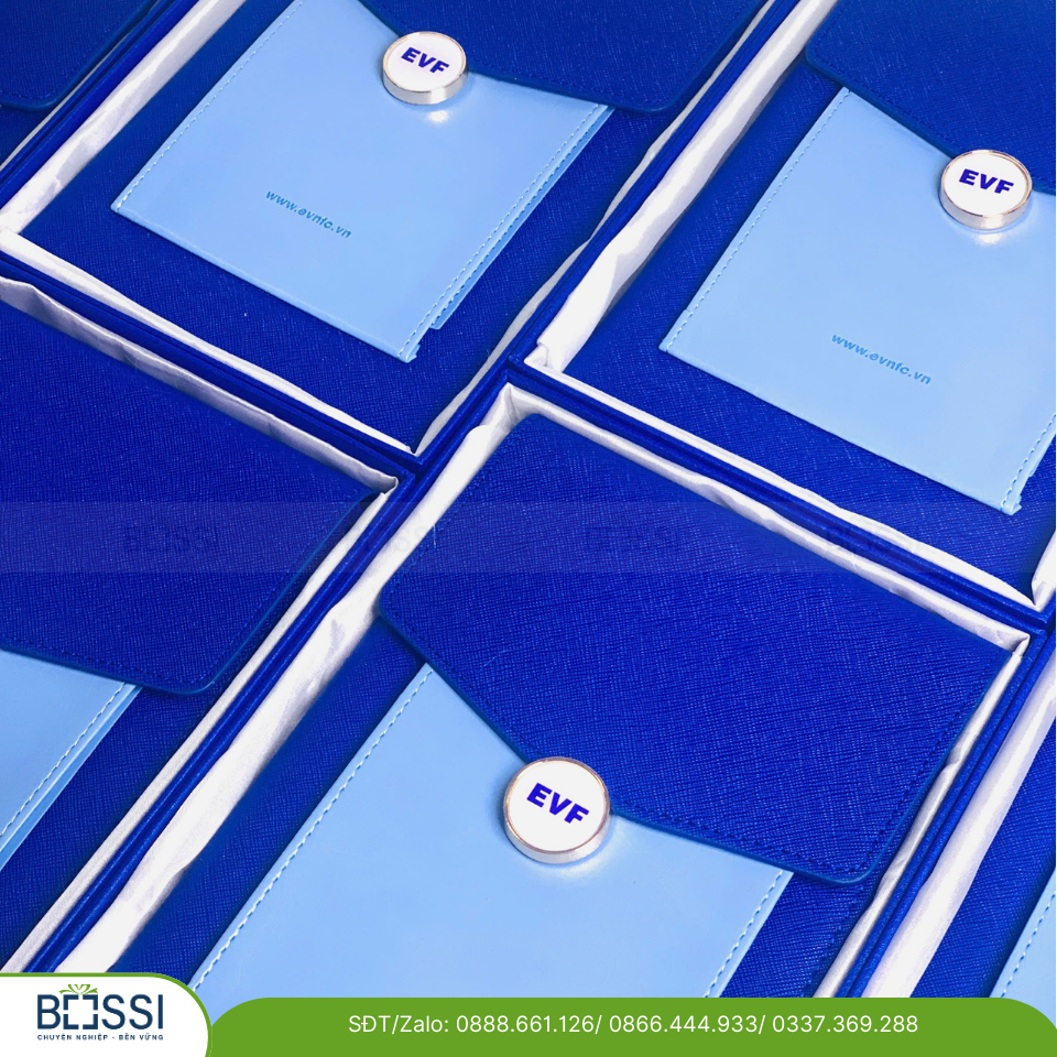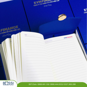 Sổ da gáy dán SD03 in logo EVN FINANCE với phong cách hiện đại, phù hợp với nhiều khách hàng trẻ, đối tác, sinh viên. Món quà này đã hỗ trợ đắc lực cho nhiều chiến dịch marketing của doanh nghiệp và cá nhân. Hãy cùng Bossi tìm hiểu ngay món quà này nhé!