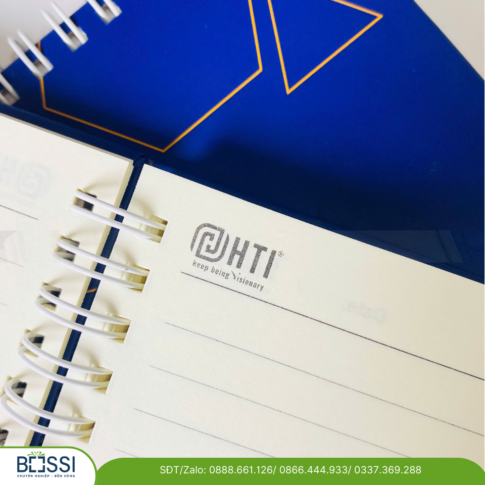 Sổ tay A5 gáy xoắn in logo HTI là món quà được nhiều doanh nghiệp cá nhân lựa chọn cho các chiến dịch truyền thông và khá hài lòng bởi: