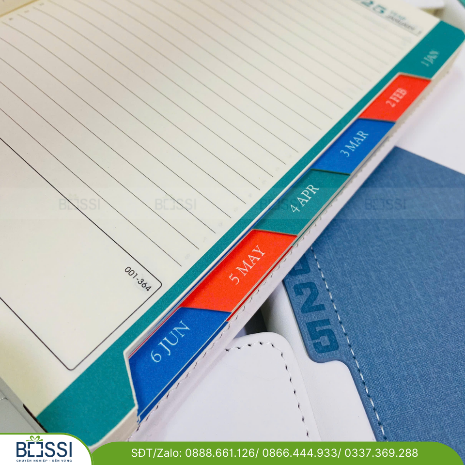 - Sổ có dây lụa đánh dấu kèm bố trí màu sắc sinh động, dễ tìm kiếm thông tin.