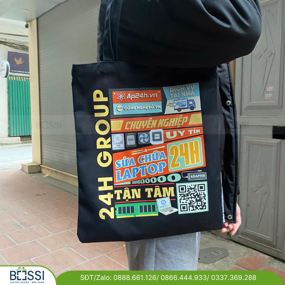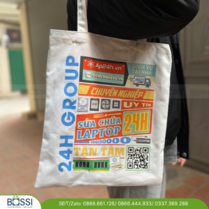 - Túi vải canvas quà tặng logo laptop 24h – Thiết kế nhiều kiểu dáng đặc trưng.